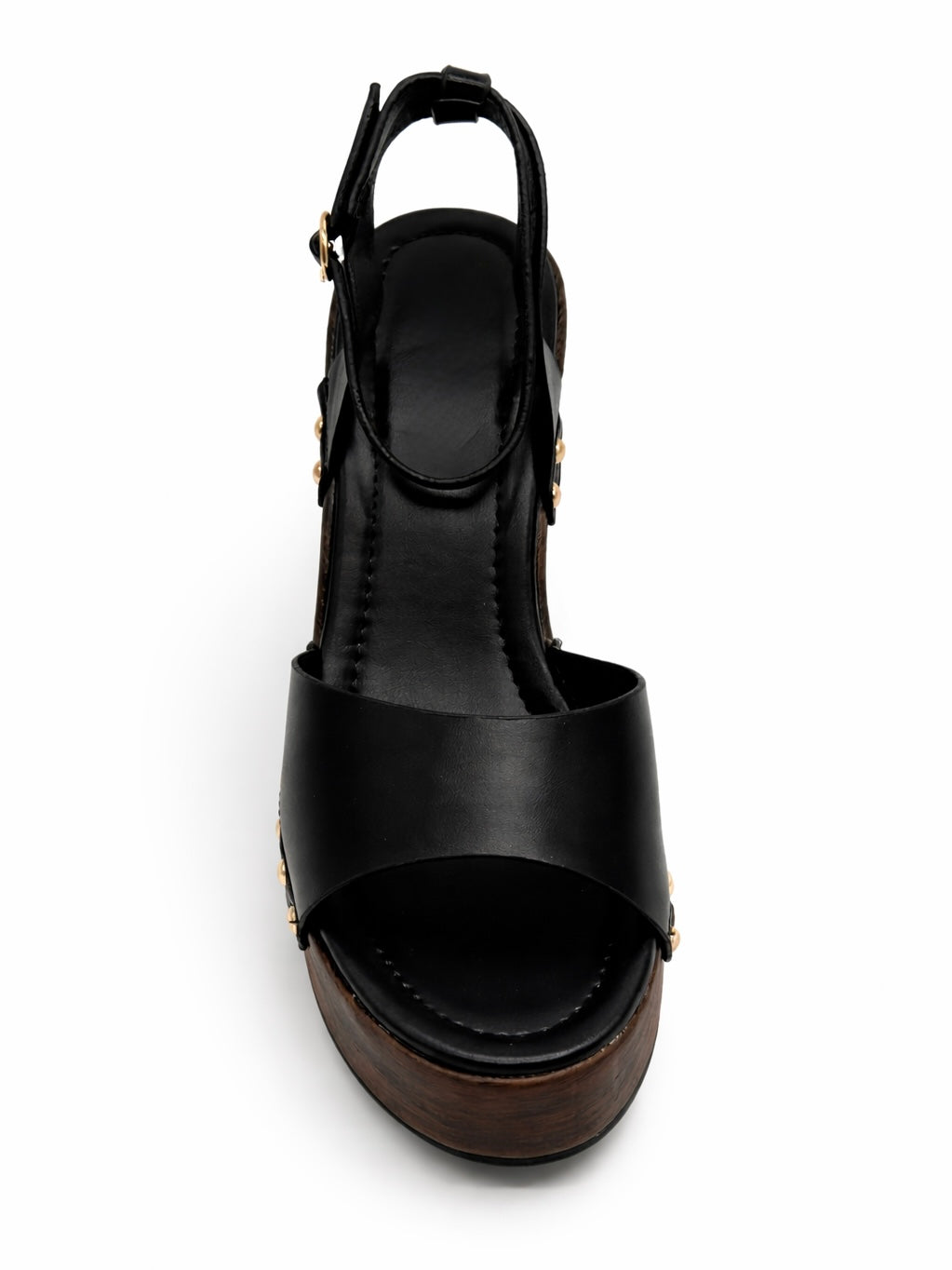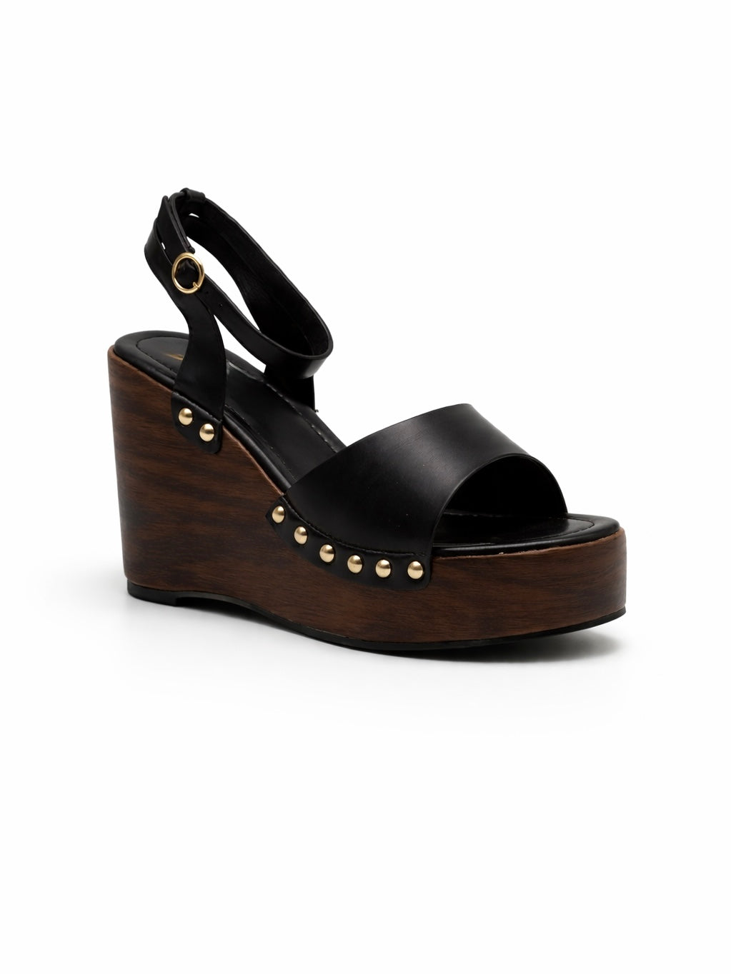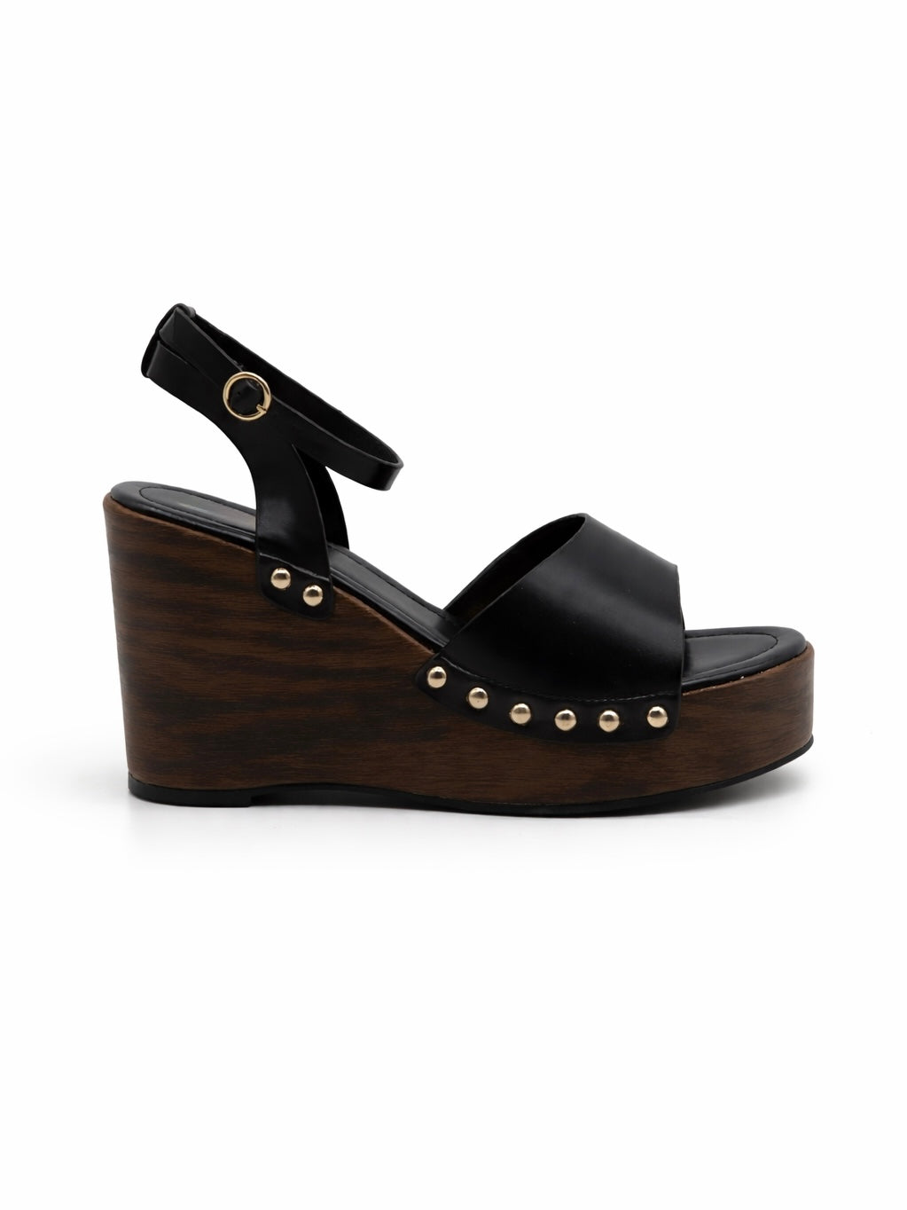 Sandalia de plataforma tipo wedge en negro con acabado tipo madera.