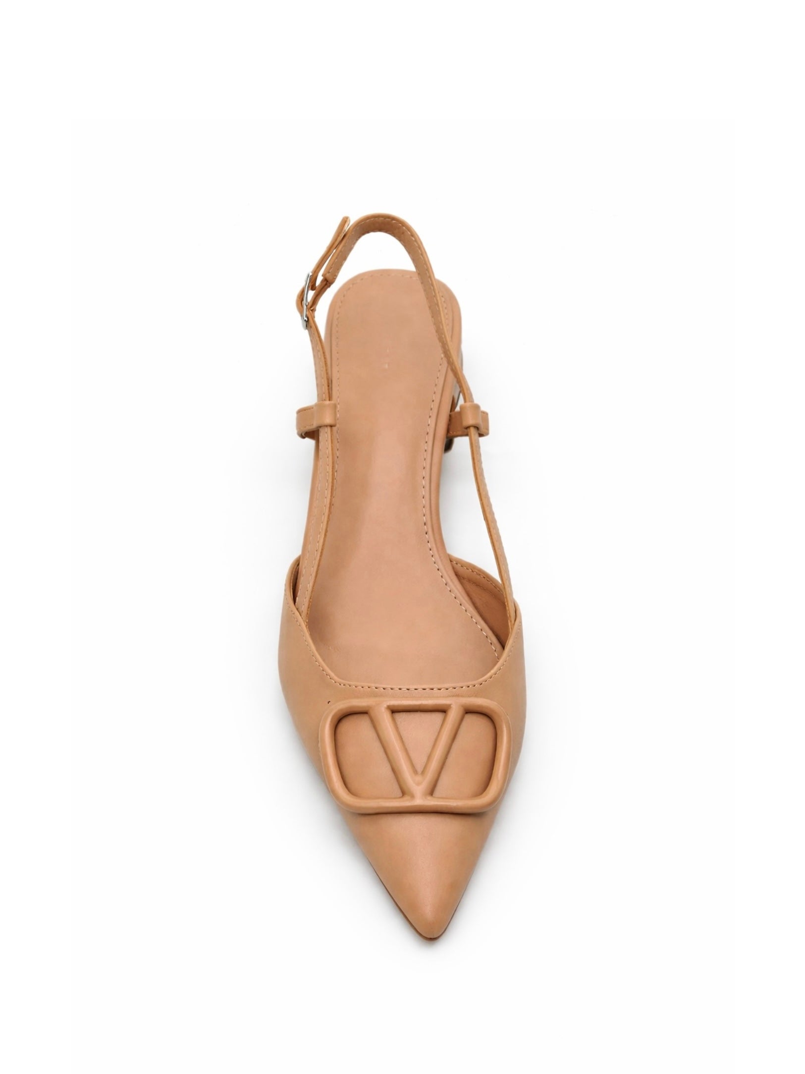 Diseño slingback con punta fina y tacón medio bajo.El detalle frontal con herraje añade un toque sofisticado. Su ajuste con tira trasera permite mayor seguridad al caminar, convirtiéndola en una opción práctica para el día a día.